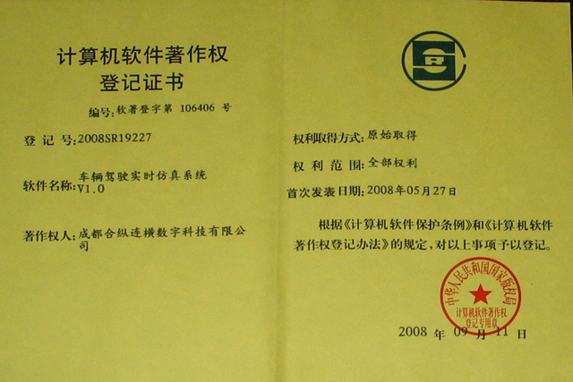 | 软件著作权 | 车辆驾驶实时仿真系统V1.0 | ![]() |